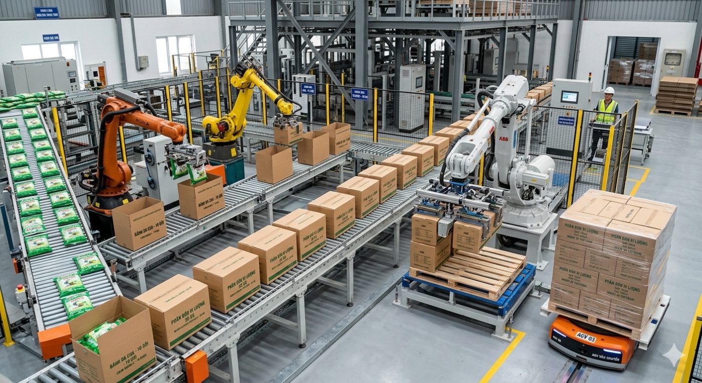 Tối ưu hóa chi phí vận hành và tăng cường năng suất là mục tiêu cốt lõi của mọi doanh nghiệp sản xuất trong kỷ nguyên số. Để đạt được điều này, các nhà lãnh đạo đang tập trung đầu tư mạnh mẽ vào các giải pháp tự động hóa tiên tiến, đặc biệt là khâu đóng gói thành phẩm. Sự xuất hiện của Hệ thống robot đóng gói tự động cho túi, thùng carton, pallet đã mang lại một bước ngoặt lớn. Giúp giảm thiểu đáng kể chi phí nhân công, loại bỏ sai sót do con người và đẩy nhanh tốc độ đưa sản phẩm ra thị trường.