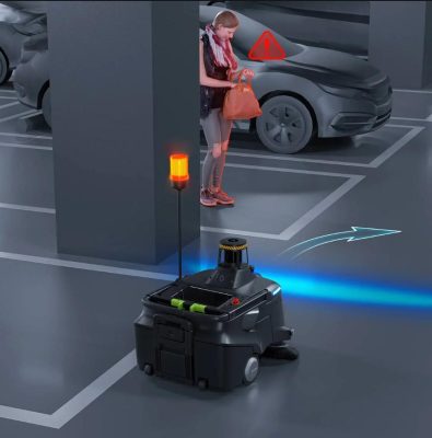 Robot được trang bị hệ thống chiếu sáng cảnh báo dưới sàn, giúp thông báo cho người đi bộ khi đến ngã rẽ hoặc khu vực khuất tầm nhìn, đảm bảo an toàn tuyệt đối trong quá trình di chuyển.