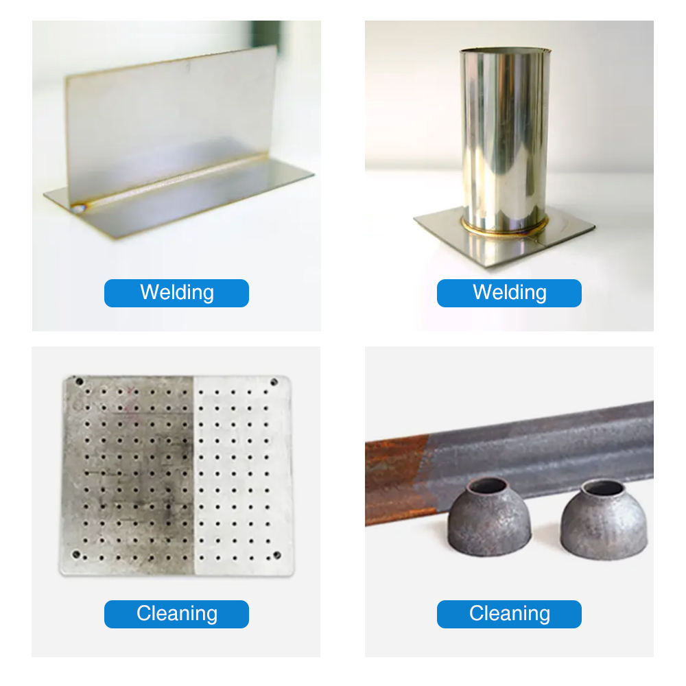 Máy được sử dụng hiệu quả trong sản xuất cửa nhôm kính, khung inox, lan can – cầu thang, bồn bể kim loại, ống tròn – ống vuông, tủ điện, thiết bị nhà bếp công nghiệp, cũng như gia công linh kiện cơ khí, phụ tùng ô tô – xe máy. Bên cạnh đó, chức năng làm sạch laser giúp loại bỏ rỉ sét, sơn, dầu mỡ bề mặt trước và sau hàn. Còn chức năng cắt kim loại chính xác hỗ trợ xử lý chi tiết nhanh chóng, nâng cao hiệu suất sản xuất.