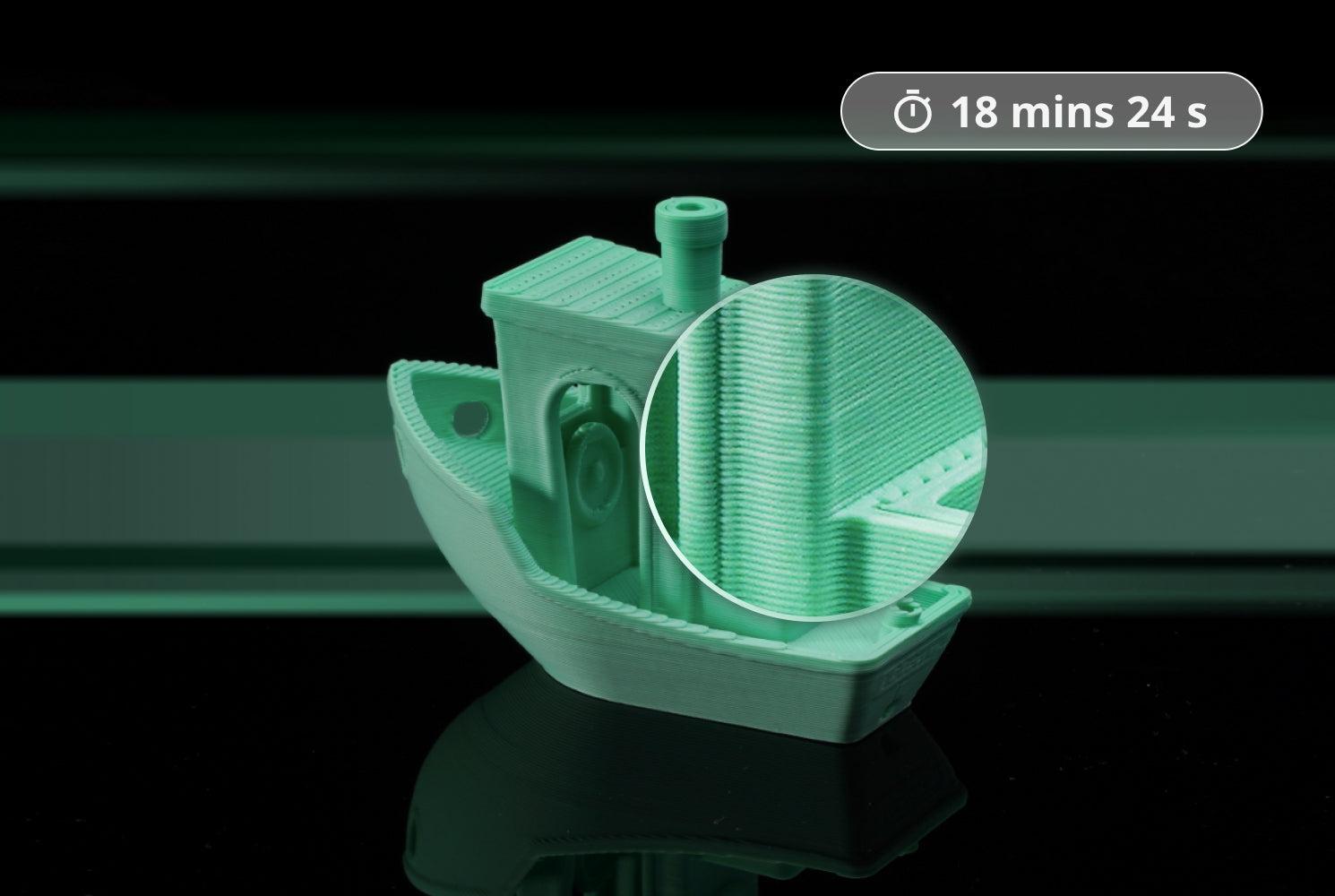 - Gia tốc lên đến 20.000 mm/s², in mẫu Benchy chỉ trong 18 phút