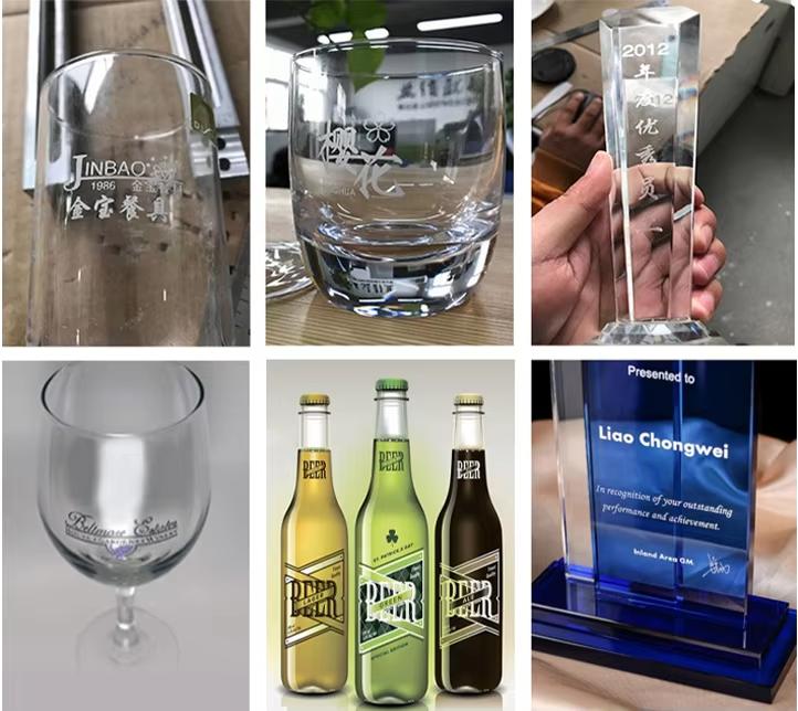 GLASS (Thủy tinh): Khắc trên kính, chai lọ, đồ thủy tinh với độ chính xác cao, nét khắc tinh xảo và bền lâu.
