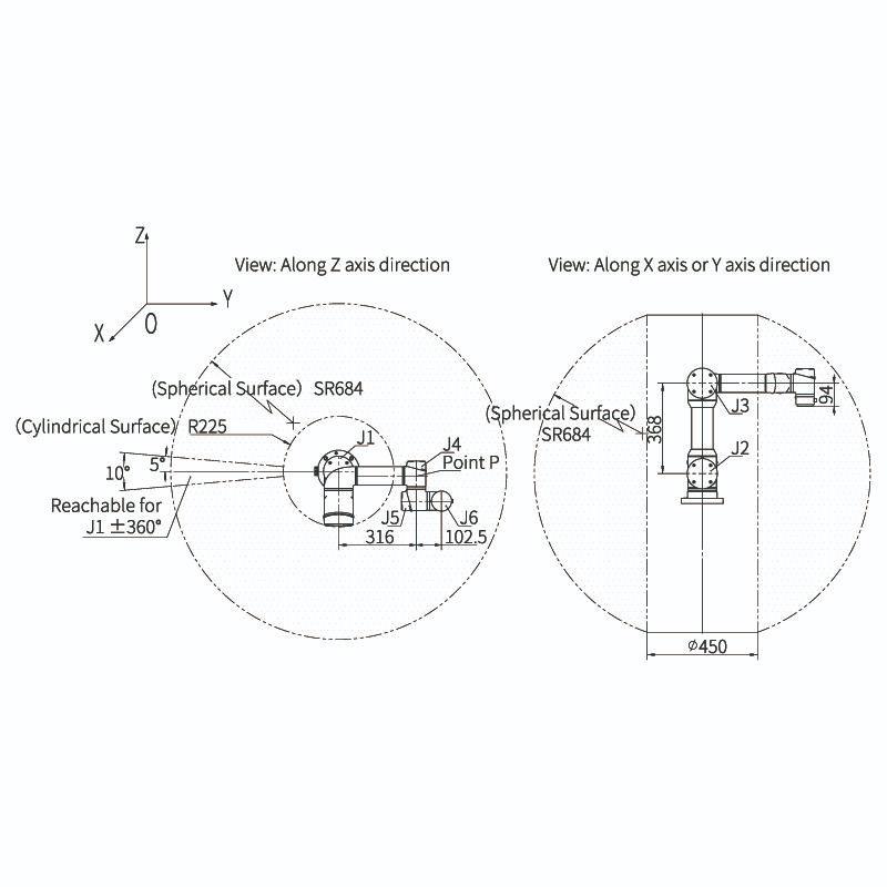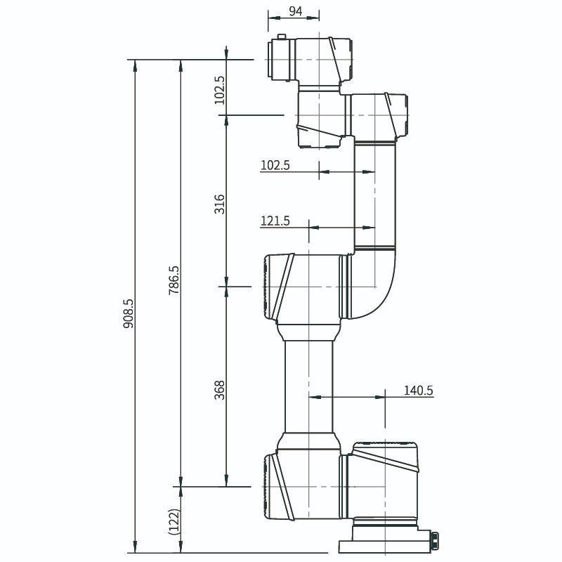 Tầm với 786,5mm cho phép robot bao phủ khu vực làm việc hiệu quả, cân bằng giữa khả năng thao tác rộng và việc tối ưu diện tích lắp đặt, phù hợp với các nhà máy có không gian hạn chế.